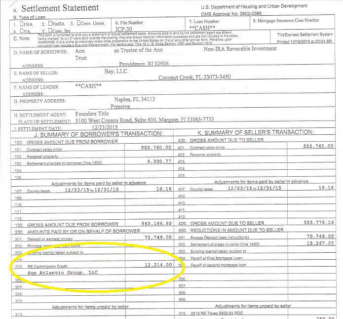 Actual HUD Settlement Statement Showing
